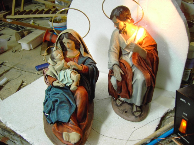 quien lo diria... al ver a san jose descuajaringado, pensé que si estaba con unos cortes tan limpios era porque habia sido totalmente necesario, pero luego al leer la explicación, me sorprendo aun más de la fragilidad de las figuras,porque yo tenía entendido, que suelen ir cocidas, y al cocerlas, resistian más, no sé. Aparte, es una suerte que por la mitad vayan huecas, porque asi es mas facil meterles el cableado, según me explicaron mzambrana y el super (iñigo) en otro post, los talleres no rellenan del todo el molde.