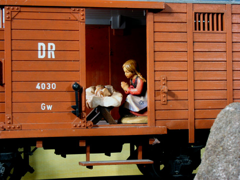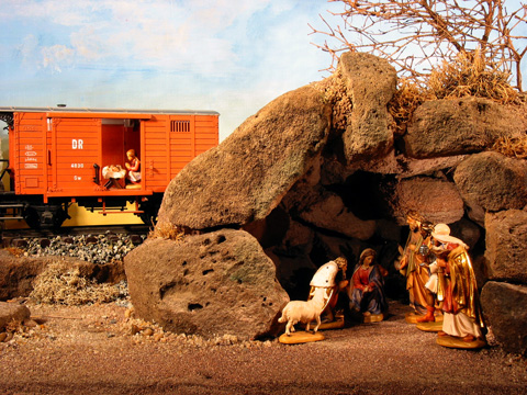 belen tren [640x480].JPG (163KB - 280 descargas)Luispo y Banbi pusieron una imágen del belén judio de Hans Grümer que es muy interesante pero claro el que no haya ido a la página de Hans no lo habrá visto más completo o por lo menos el transfondo trágico de ese diorama....el Niño no está con María y José. Los Reyes están un poco alucinados.....¿donde estará el Niño......? ...en el vagón con destino a.....A LAS CONCIENCIAS