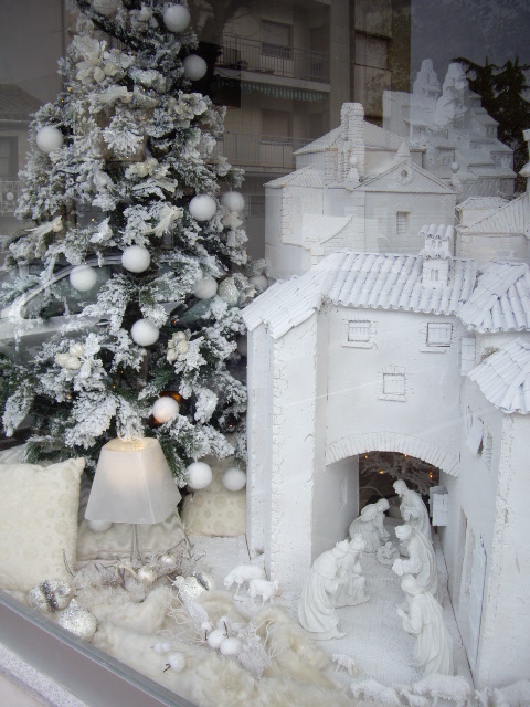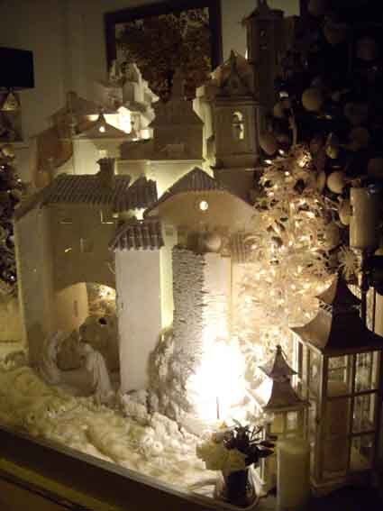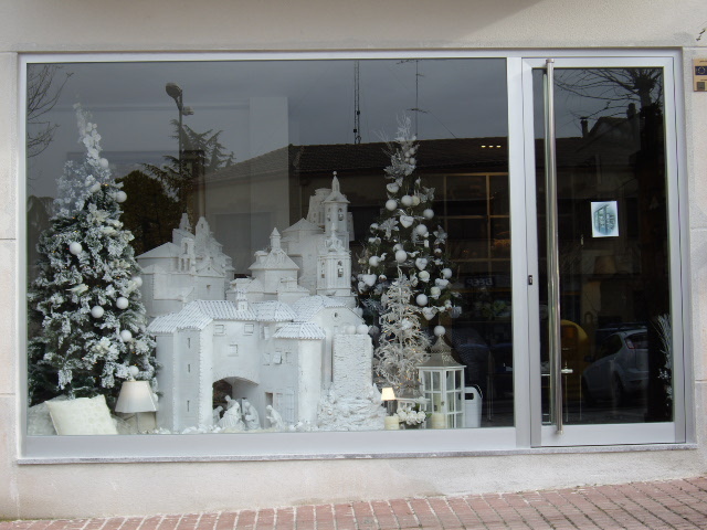 Precioso, pero si algún decides pintarlo, quedaría una maravilla, aunque en blanco simulando un paisaje nevado queda también muy bien. Desde luego un buen reclamo para el comercio.