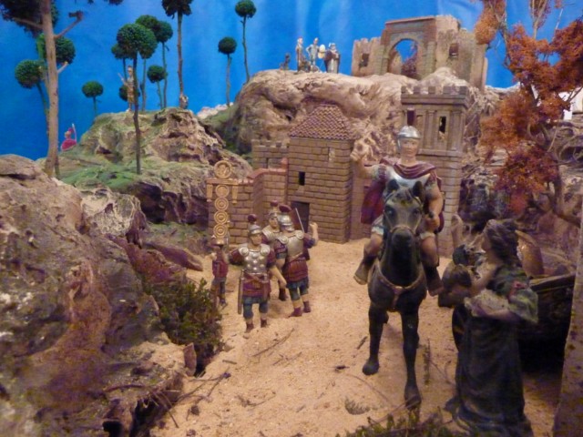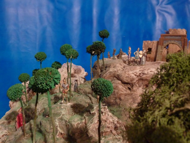 Tambien quiero agradecer a las Tres Caidas sus comentarios ya que no me hace falta tener abuela. Dices que eres mi fan, Joderrr parece que acabo de salir de OT, a partir de ahora me llamaré Jon Ander que es mas artistico. Ahora en serio, Gracias por llamarme maravilla de persona y que tengo un fondo mas grande que el saco de papá noel, pero si me conocieras en persona verías que tambien tengo un torete bravo interior aunque trato de calmarlo jej, jej. Tres caidas, el Belén dices que parece que es un pueblecicho que existió hace eños, te doy la razon es un pueblo que existió "en potencia"; antes de ser ya era en mi cabeza, como son todos vuestros proyectos. Bien me estoy enrrollando. Solo quiero deciros que mi norma es que belenista no se es solamente el mes de Navidad, sino que se es todo el año, podemos estar recopilando ideas, bocetos, materiales, musgo, y realizando casas o elementos que requieran mas dedicación, cualquier día del año, para cuando llegue el esperado momento de realizar nuestro Belén. Al belenista todo le sirve, el belenista y los contenedores de la calle son amigos jej jej, por eso os propongo unas preguntas:¿Que son las tinajas que se ven en las fotos 87 y 92?, y los copones dorados de puest de mercado en las fotos 63 y 71?, o ¿que pensais que son los pinos de lejanía que aparecen en la foto 25 o en la que cuelgo ahora?. ¡Que rollo os he "metío", y todo para deciros simplemente "GRACIAS"