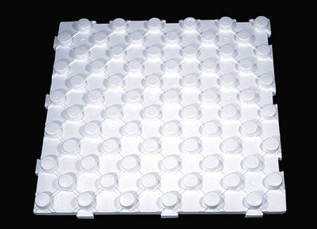Veo en una fotografía uno que pones para suelo radiente. Efectivamente se pone en los suelos radiantes por donde van los tubos, ese concretamente lleva tetones para pasar los tubos por entre ellos, otros son lisos y van grapados (los tubos), etc, pero su función es solo aislante.