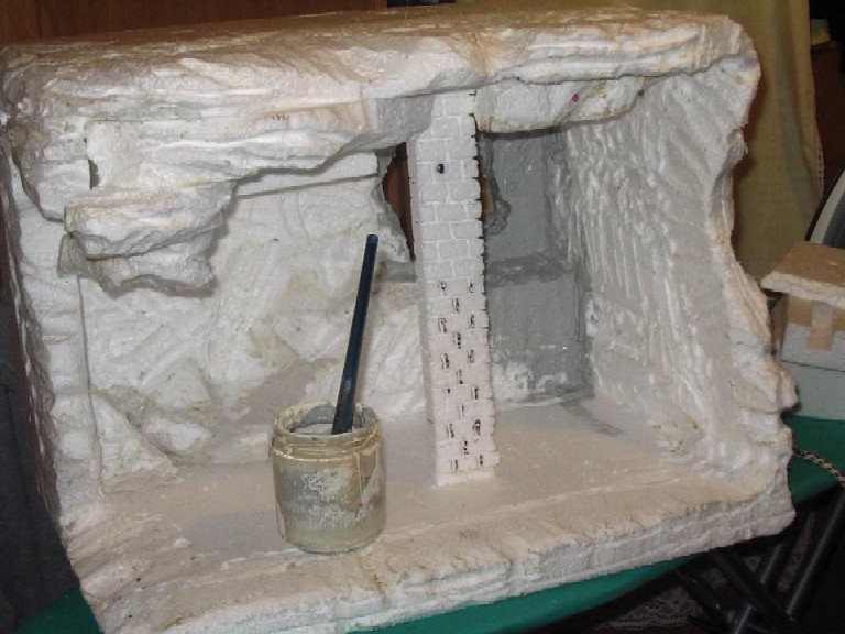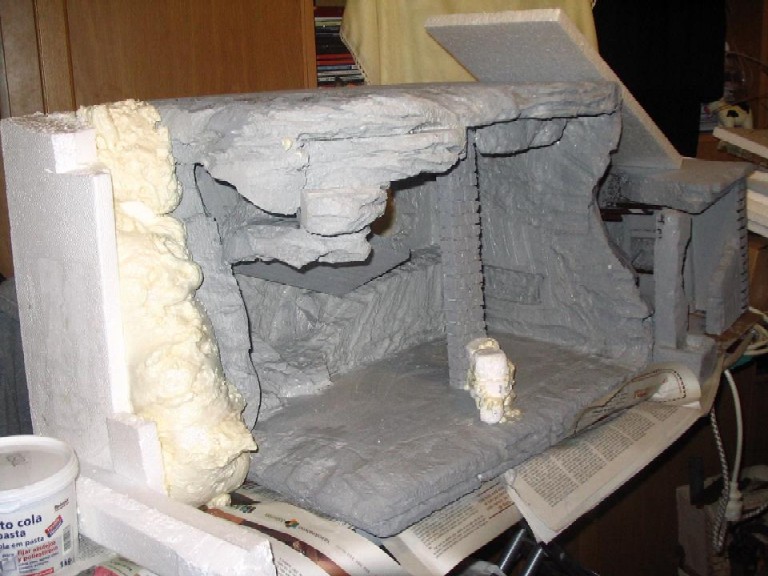 Bueno ya veis que es una gran caja de porex cortada de manera irregular y a la que he ido pegando otros trozos de porex para hacer una especie de rocas