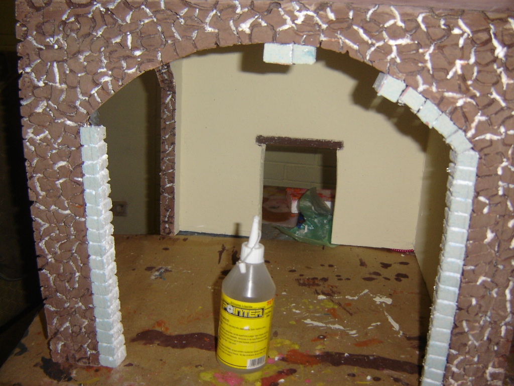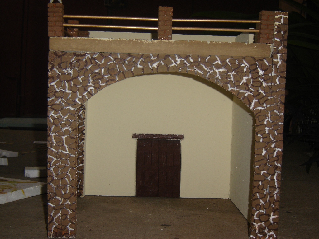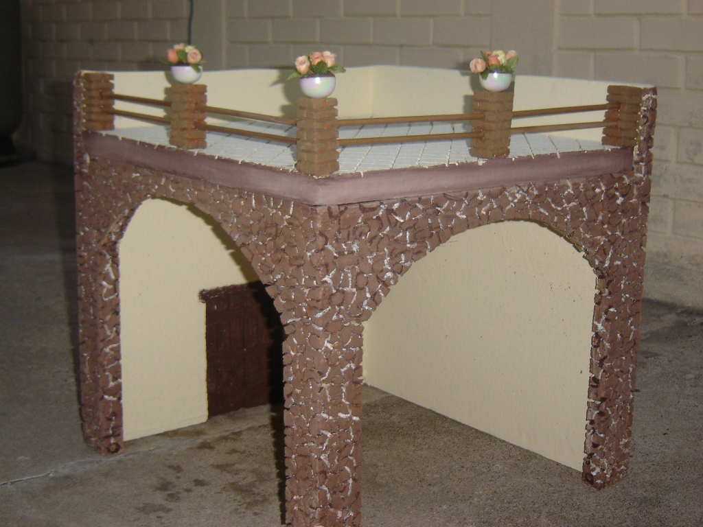 Lo que simula la tierra de las macetas es plastilina, las masetas eran unas copas de recuerdos matrimoniales y las flore de tela, todo comprado con los chinos… intenté hacer las maceta con duroport pero no me gusto el efecto, aunque este portal no lo use por un pequeño incidente que pasó, tuve que hacer otro de emergencia el cual coloco al final, la idea la saqué de un forero, por la premura del tiempo… saludos desde el país de la eterna primavera.