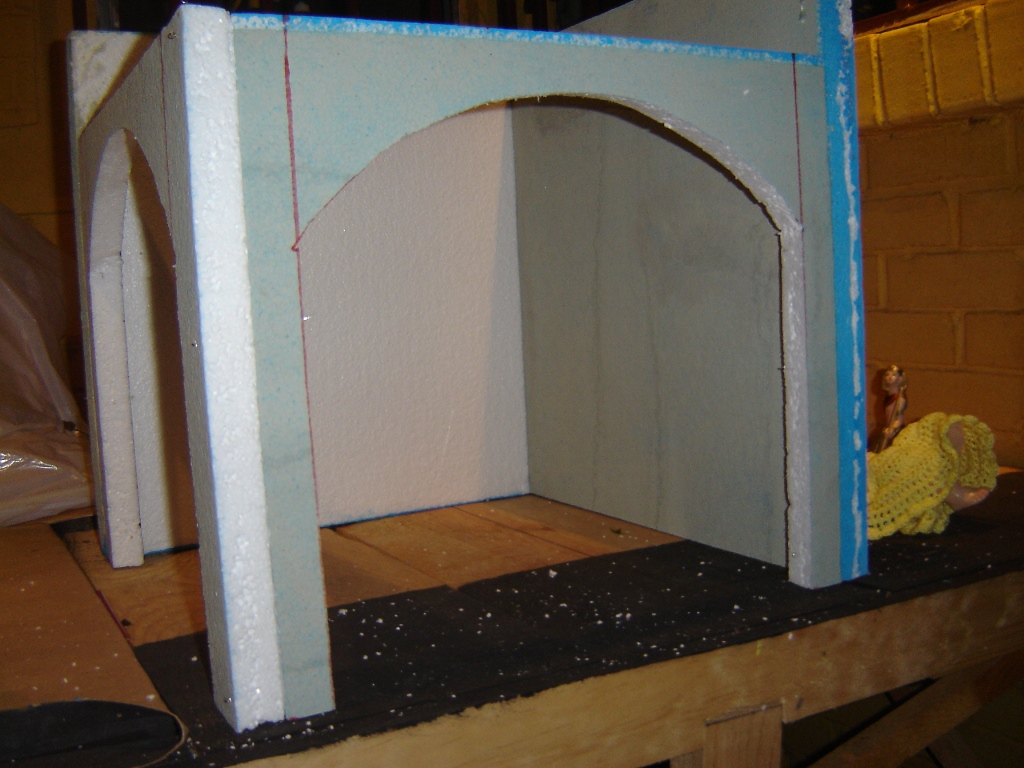 Pues bien, mi diseño como siempre es muy sencillo utilizando retazos de porexpan de bolitas (sólo este he visto en mi país y le llaman duroport), son para aquellos que como yo, son neófitos en este mundillo que me fascina… pero necesitan partir de algo. Lo más importante de este trabajo fue mi ayudante, aunque como verán, se le olvidó quitarle la tapa al silicón, pero me gusta que me ayude para que el amor por reconstruir el acontecimiento más grande e importante del Universo no muera