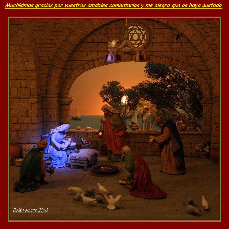El problema Silvia es que o pruebas o nunca lo sabrás, pero ya he dicho que probar vale dinero. Los LEDs no siempre son una estupenda solución si no se prueba adecuadamente. Por ejemplo las fotos que te han pasado, están iluminadas con LEDs azules o con espectro azul y esto es un error (y que me perdone Emore). El Niño no debe nunca iluminarse de colores como te aconsejan por otro lado, que me perdonen de nuevo; antes al contrario debe tener la luz más blanca de todo el contorno. El motivo es puramente espiritual y estético: es lo más importante del Belén.