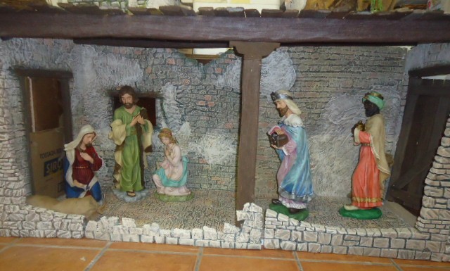 Pues estoy sacando las figuras para dar el barniz final y para marcar dónde debo cortar para las peanas,como el pastor al final le pondré en el lado de fuera del portal a ese no os le pongo,he hecho un par de fotos para ver más o menos como va la cosa y las figuras que faltan són las que tengo barnizadas.Lo siento,pero creo que estas serán las últimas fotos que os pondré hasta que tenga todo terminado jejeje así os sorprenderé más jajajaja.Claro,que luego vendrán los peros jejeje pero eso me da igual ya lo más gordo lo tengo terminado,ahora a recortar lo de las peanas y a hacer bártulos para adornarlo....