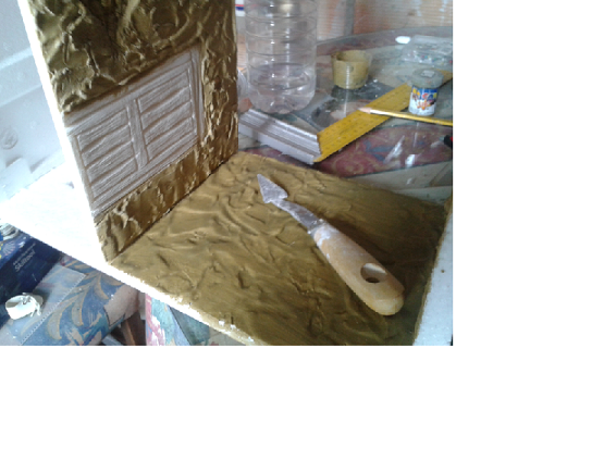 A las paredes tambien me queda echarle las veladuras y tambien vereis una espatula pequeña tansformada en paletina ya que en ningun chino de mi pueblo e encontrado paletras para oleo aunque me e apañado con esta que e fabricado.espero que os guste ,que ya va cogiendo forma jejej saludos