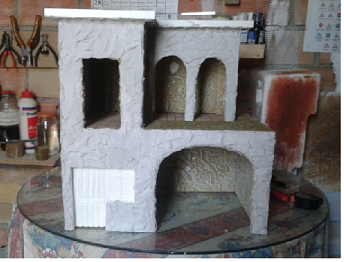 aqui ya la pongo casi terminada a solo una veladura a los ladrillos y darle el verde musgo,espero que os guste.