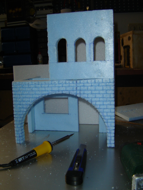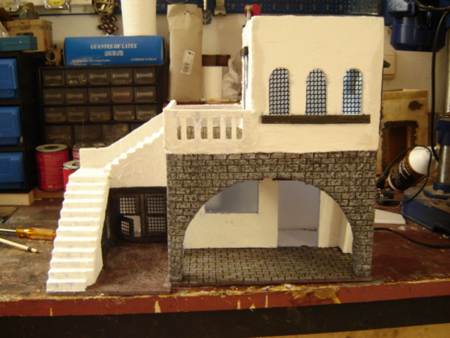Bueno, bueno....jejjj no está mal hombre, pero tiene algunos defectillos que seguro con más experiencia se corregirán. En principio, el volúmen, la composición están bien, a mí si me gusta pero ahora hay que pensar con lógica como dice el amigo Calico y tiene mucha razón. El arco principal le encuentro tres defectos que como digo se corregirán con la experiencia y paciencia. Los laterales deberían ser más potentes para un arco tan grande, date cuenta que los arranques son los que soportarían todo el peso; Este arco no tiene dovelas y por lo tanto constructivamente se caería. La dovela se hace dividiendo el arco en el número de partes iguales que convenga y pasando radios desde el centro del arco por esos puntos....de ese modo todas las dovelas trabajarían en cuña; por último hay poca medida desde el centro del arco hasta el piso superior que soporta la segunda planta, la mayor parte del peso la soportaría la mitad del arco y en el centro habría mucha carga. Por el Foro hay muchos ejemplos que te pueden servir para mejorarlo. Reyes tenía uno puesto hace poco Sobre las escaleras no están terminadas y seguro que les buscas un apoyo en el descansillo y la segunda tramada para que no se caigan los peldaños...Fijaté en el de Conchi que lo ha mejorado mucho Bueno que sólo es un tema constructivo y ya sabemos que en Porex no se cae y esas cosas pero poco a poco se mejora Conchi no me seas...jejjje que tú estás aprendiendo mucho. Bueno que si tienes dudas te busco algún dibujillo aclaratorio Un abrazo