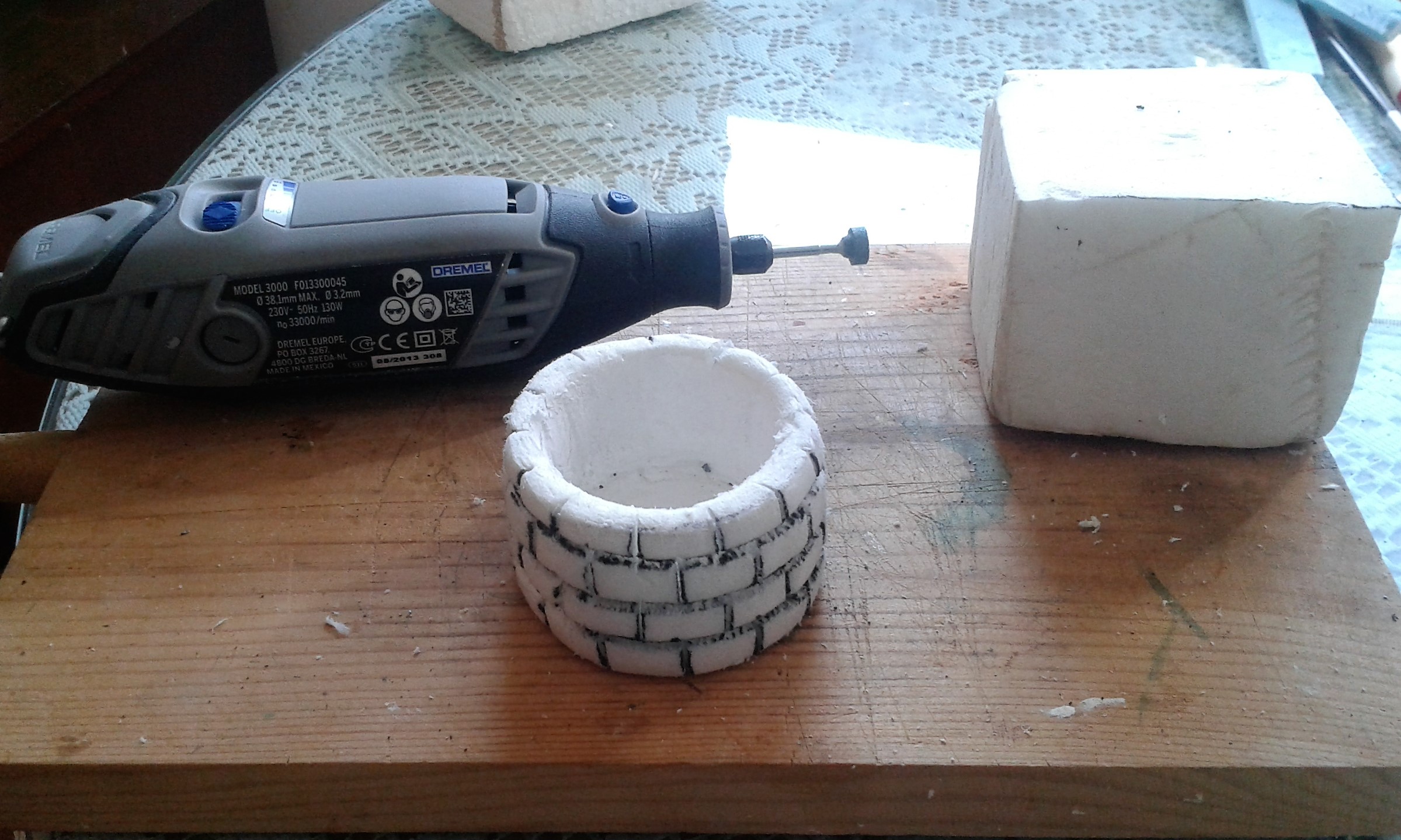 Pozo en poliestireno extruido y madera.