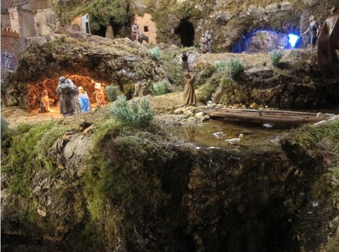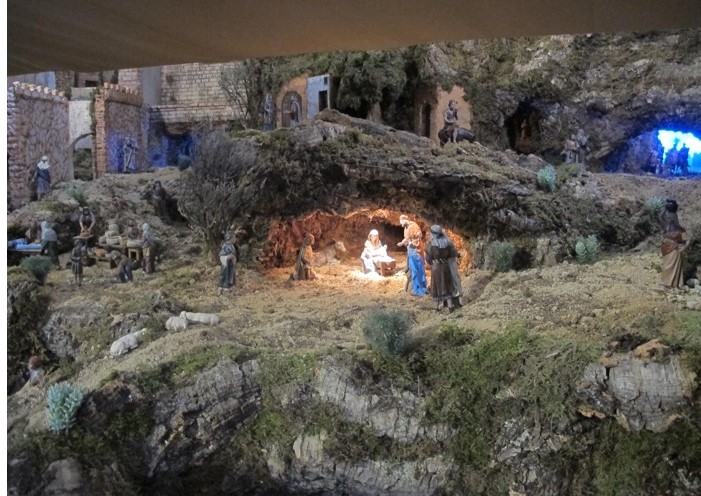 Se trata de un belén muy especial, en el que se combinan la construcción tradicional, a base de corcho y musgo cuidadosamente tratados, con espectaculares efectos de reflexiones múltiples en espejos, logrando unas sorprendentes perspectivas y lejanías. Hay que verlo para darse cuenta de lo que es, pues las fotos no permiten darse cuenta de las distancias de las lejanías.