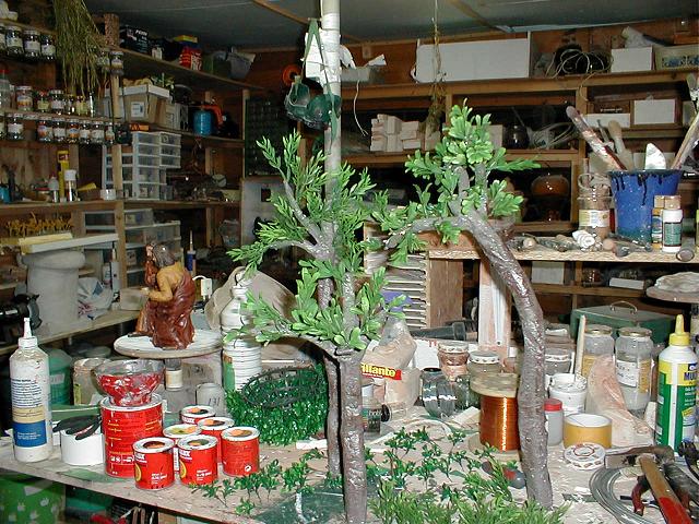 P1010005.JPG (96KB - 205 descargas)Califa y J. Ignacio.- Esto son pruebas que estoy haciendo para ver el trabajo que me dan el hacerlo.- Los troncos, todos, son de porexpan, tanto de los arboles como de las palmeras.- Las hojas de las palmeras son de papel con un alambre por medio y las hojas de los arboles son plantas de plástico compradas en todo a 100 y desmenuzadas una a una poniéndoles un alambre en la punta y clavandolas en las ramas de los arboles.- Quizás vaya al campo a por troncos naturales de jaras o cualquier otra planta seca y clavarle las hojitas, ya veré.-