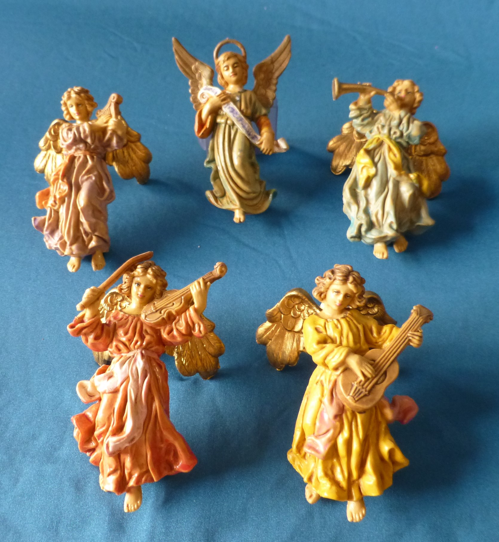 Vendo precioso conjunto de figuras italianas en resina especial de 13 cm formando adoración de pastores y magos (12 figuras) y ángeles músicos (5 figuras).