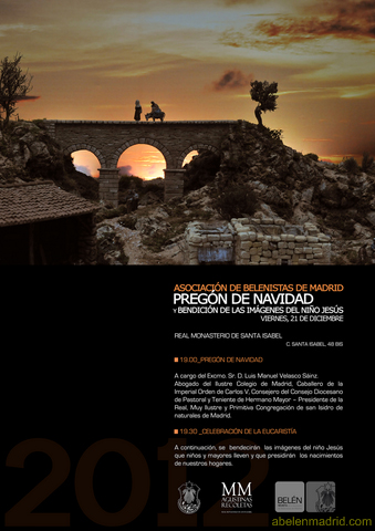 Como viene siendo tradicional, el Pregón de Navidad se celebrará el próximo día 21 de diciembre a las 19 horas en el Monasterio de Santa Isabel, sito en la calle Santa Isabel nº 48 bis.