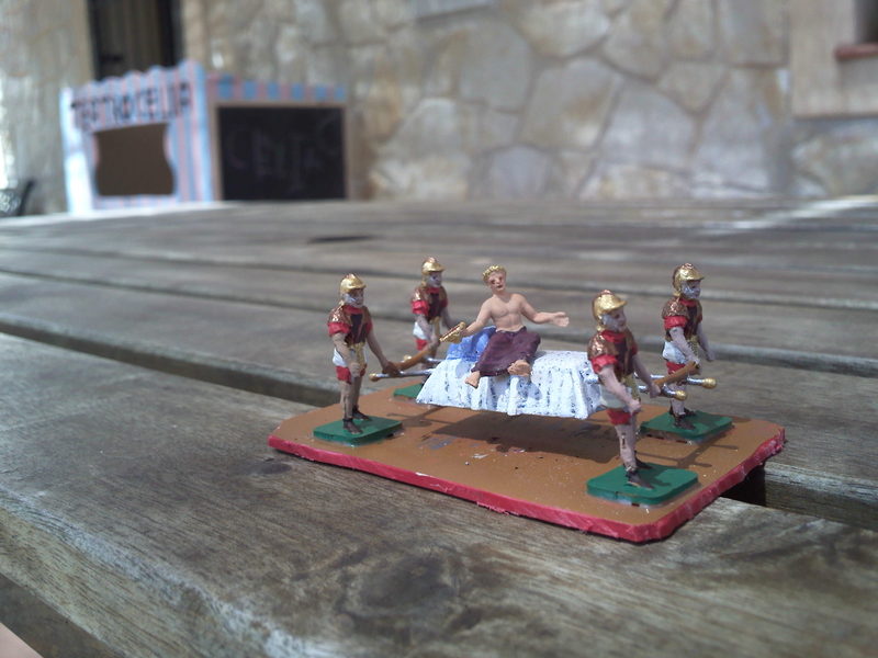 si que va a gustito, si, está bien bonito y sobre todo muy original y como va ya medio despelotado, digo yo que ¿le llevarán a los baños públicos de Caracalla?. Te están quedando de lujo todos los vehículos de la época y también los de tracción humana,ja,ja, y las fotos siguen siendo muy buenas aunque sean con el móvil. ¿cómo encuentras tantas figuritas tan chiquitas? porque no debe ser fácil. Enhorabuena, Jesús, cada vez me tienes más admirada de la obra faraónica que estás realizando.