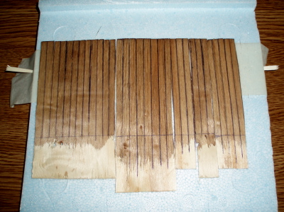 Después he teñido con nogalina los listones por las dos caras (prensa2).
