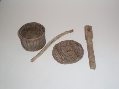La pieza que forma la rosca la he hecho dibujando la espiral con un rotulador y haciendo la hendidura con un cutter. La palanca es un trozo de palo sin corteza.