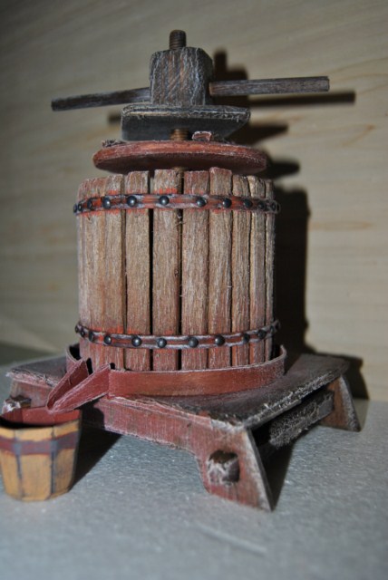 Hola a todos, he realizado un nuevo trabajo para complementar el diorama que tengo en proyecto. Se trata de una prensa de Vino manual y antigua ( no mucho ).