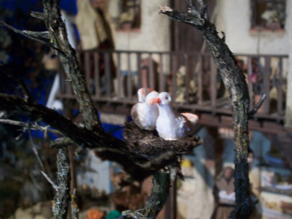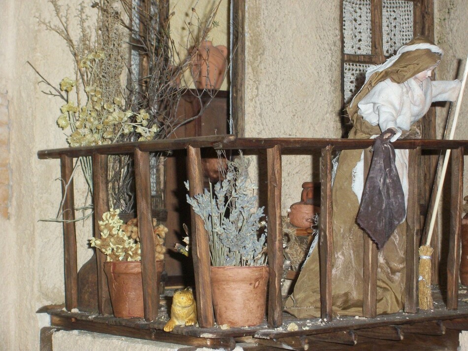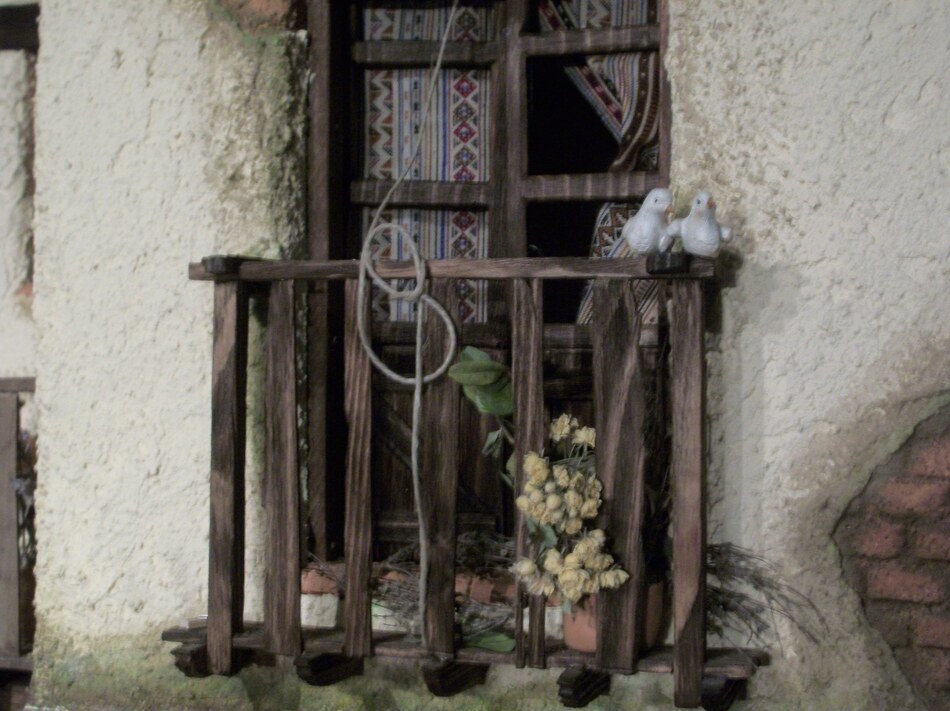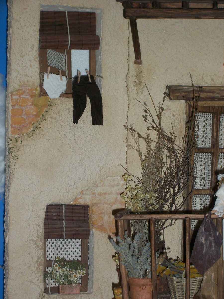 Fabuloso trabajo. Un Belén con muchos rincones para detenerse y admirarlos, detalles a rabiar y muy muy bien trabajado. El balcón de la casa con esas cortinas y los pajaros crea un rincón precioso.