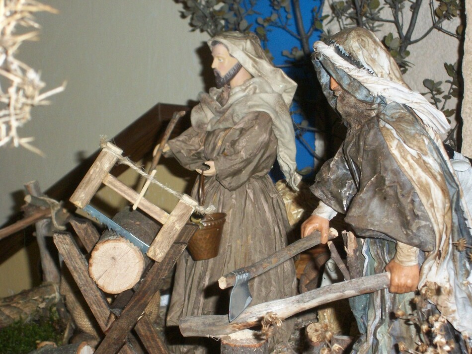 HOla Pedro Juan, un belén precioso, muy elaborado y con unos detalles bien bonitos, me gusta el balcón, los pájaros en el árbol, las construcciones monumentales, y sobre todo las figuras, están fenomenal,en la foto del leñador y carpintero las figuras son estupendas y el que tiene los huevos en el canasto también me gusta.
