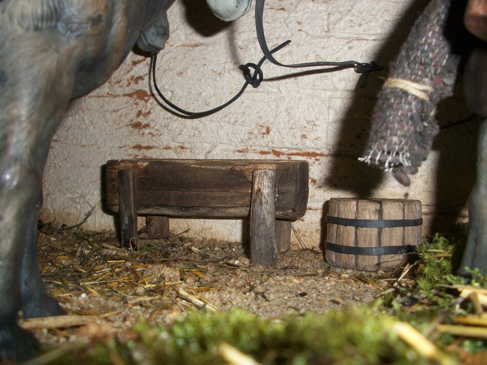 Con respecto a las figuras, lo que hacemos es coger juguetes que estan algo deteriorados y utilizar las caras, manos y algunas partes mas con las que formamos algo que se asemeja a un cuerpo y despues vestirlo con telas. Otras figuras las hemos comprado gastandonos lo menos posible y lo que hacemos es vestirlas acorde con el resto.