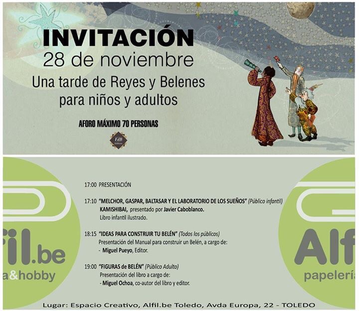 En Alfil.be Toledo sita en la calle Europa, 22 el próximo sábado 28 de noviembre tendremos un encuentro para todos los públicoa en el que se presentaran los libros relacionados con el belenismo de la editorial FDB:
