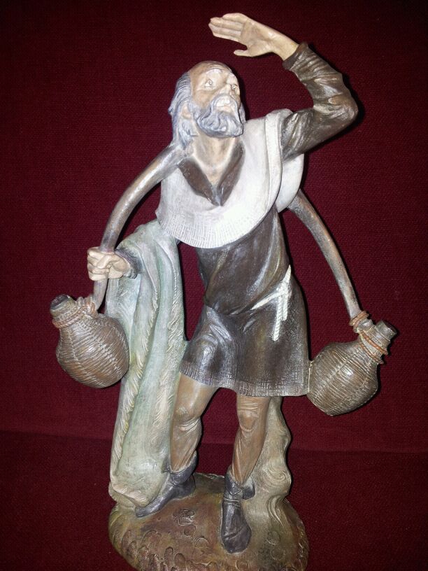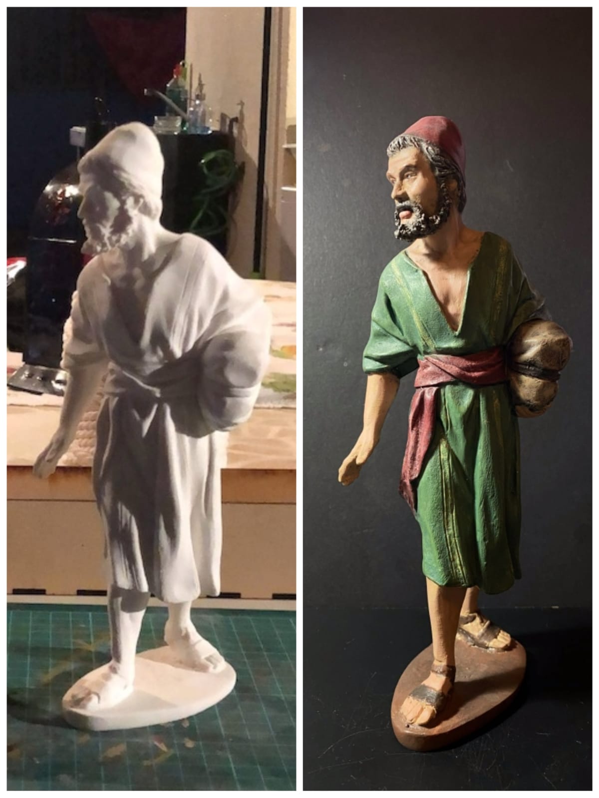 Aunque de 2012 reactivo el hilo por casualidad o no, rebuscando en el foro me encontré estas curiosas figuras que de refilón se me parecen a otra que en otro hilo buscamos su autoría!...(lo primero muy buena policromía y siendo la primera mas aún si cabe, enhorabuena!) y después deduzco que si las has pintado son `figuras para pintar´ de escayola?, resina? o copias de algún autor en activo...por el modelado no parecen, ¿sabes quien es el autor? o algún otro forero tiene alguna pista...