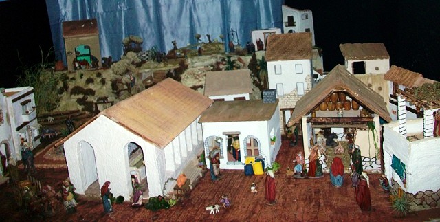 Hola Mario, gracias por tu comentario, la verdad, es que tenía puesto un papel en el fondo azul, con estrellas en el fondo, pero la verdad es que daba sensación de mucha oscuridad y decidií quitarlo, en cuanto a la perspectiva lo estamos pensando para el próximo que ya va muy bien, no sé hasta que punto la podré poner porque las construcciones son para figuras de 14 y 16 y el fondo que tengo no es mucho,pero se intentará, y con la iluminación estoy teniendo progresos, creo que es próximo será mucho mejor...............................ya me dirás. El de este año, tendrá perspectiva en población, mucho más y mejor paisaje,buena iluminación ...............................jajajajjaja, bueno una cosa es la intención y luego otra el resultado.