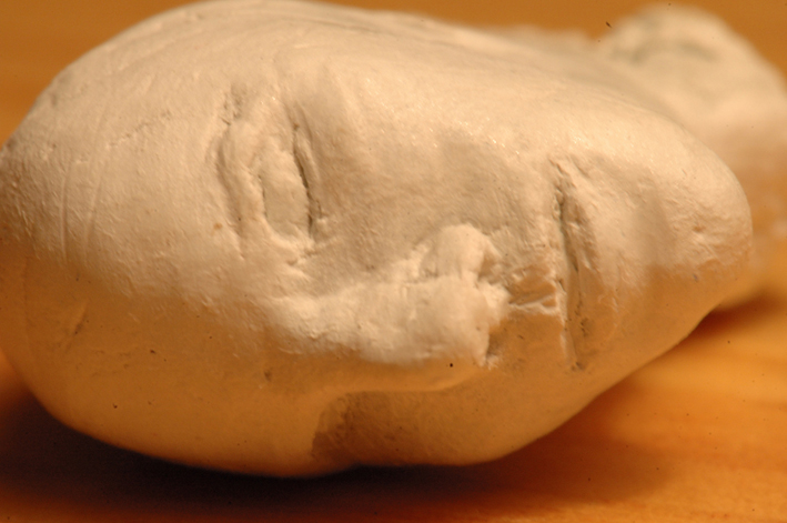 Bueno, con respecto a la masa que utilizo, es pasta de modelar "Jovi" (no lo puse en el primer post, porque no sabía muy bien si se podían poner el nombre de marcas) y creo que no la volveré a utilizar más para hacer ese tipo de cosas o al menos, para figuras pequeñas. Imagino que para comenzar a practicar, es mejor algo que tarde más en secar o por lo menos, que sea más plástica. No lo puse, pero la cabeza mide 2.5 cm. y tal vez eso también tenga que ver.