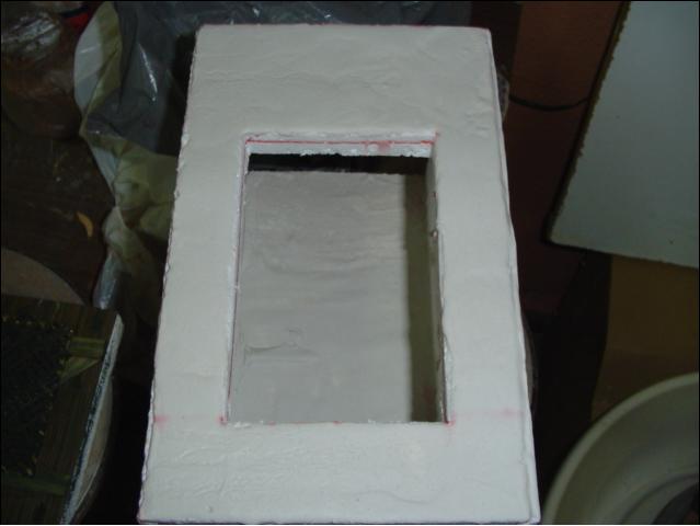 1º echamos escayola para cubrir el porexpan y cuando esta casi fraguada la escayola, con la mano cogemos un puñado de escayola.