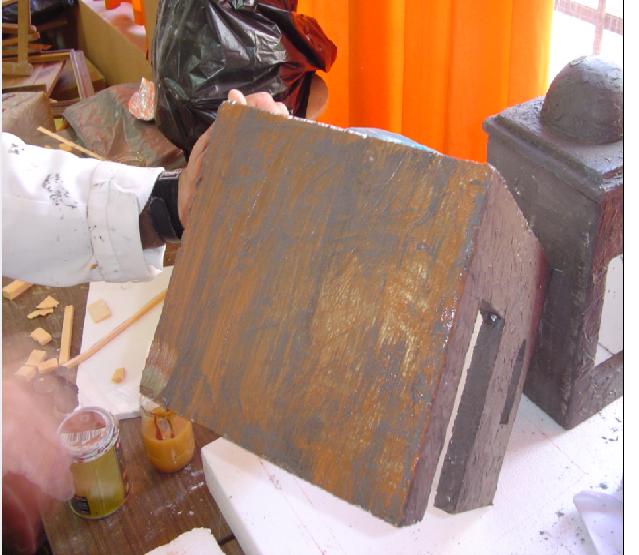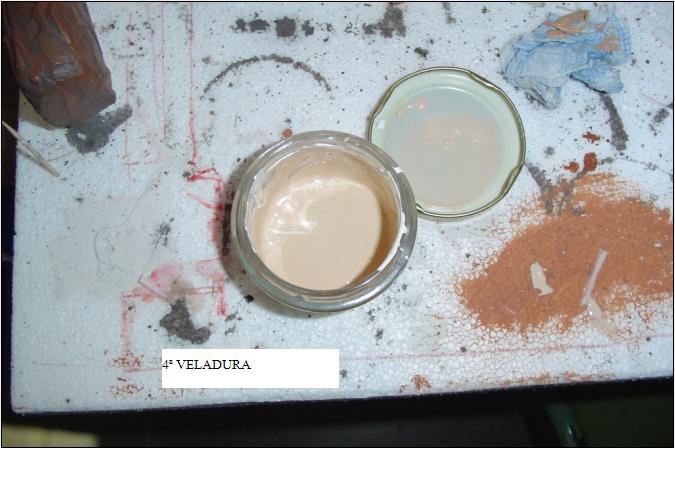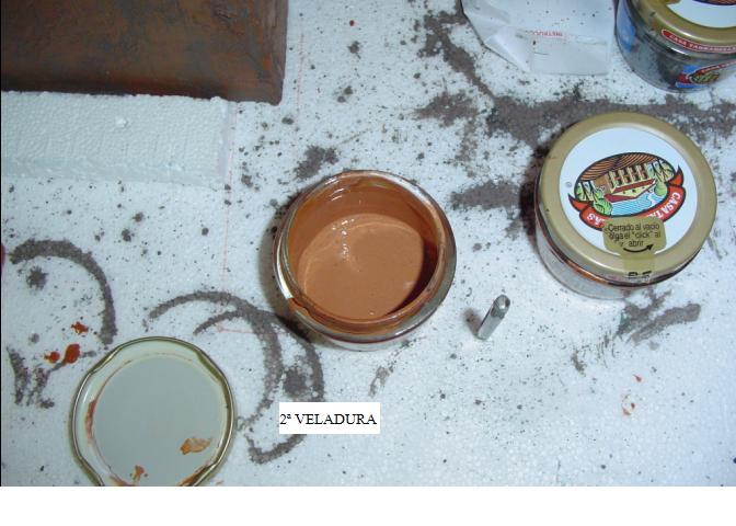 VELADURAS= CON UN CONTENEDOR NUEVO PARA LA PINTURA, VERTER PINTUAR DE FONDO + OCRE Y ACLARAMOS CON ALVERO AL GUSTO DEL ARTISTA.