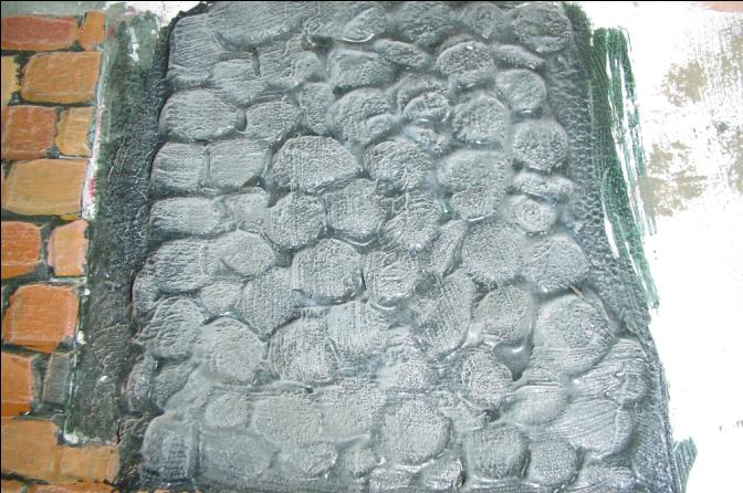 Para resaltar las oquedades, antes de secar se le dan leves toques con la espatula.