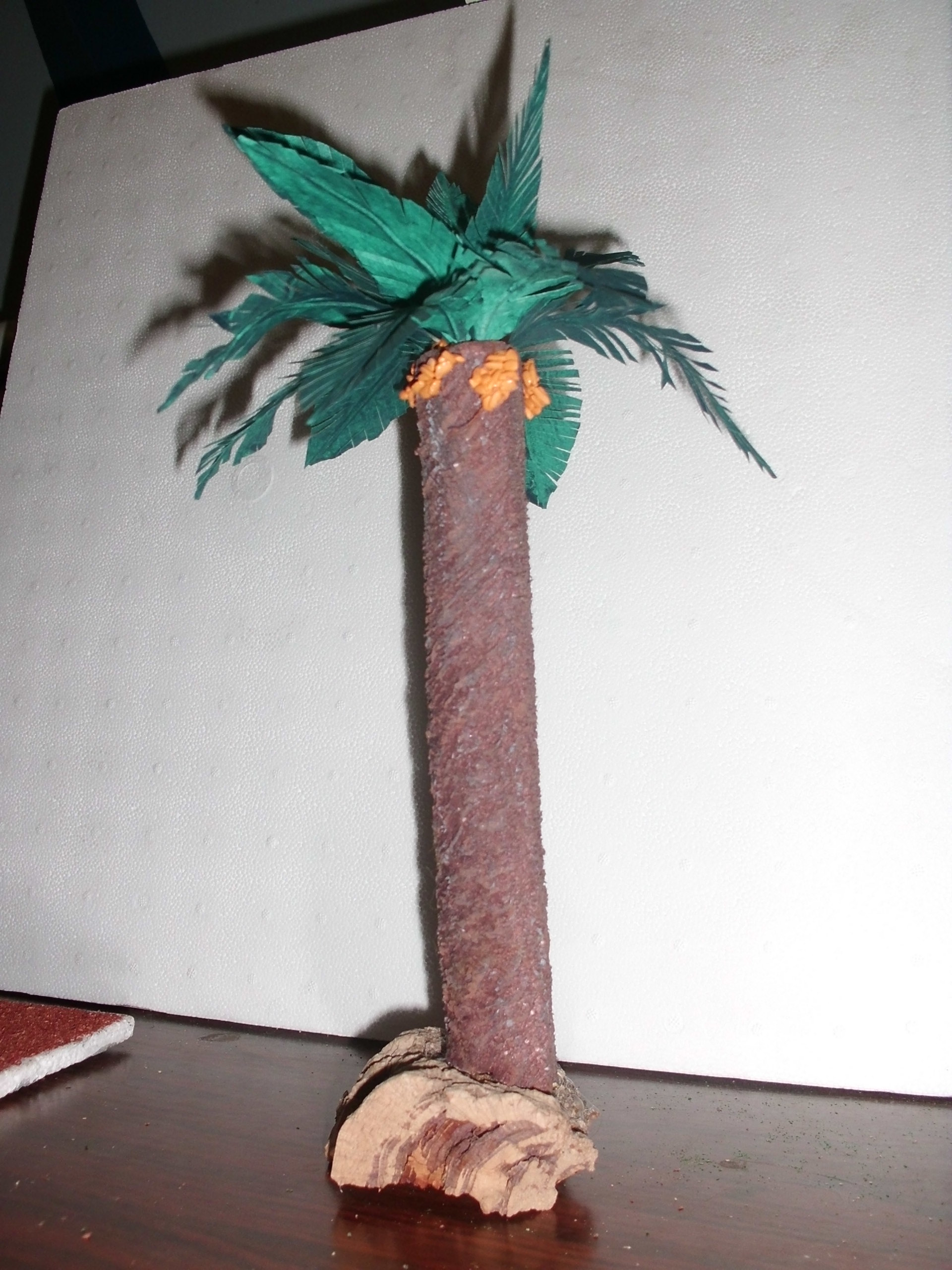 Solo comentarte que si les pones unas palmas más a la palmera te quedará mucho mejor. Yo también soy principiante y me he fijado en unos dioramas que ponen en mi ciudad natal de cómo hacen las palmeras. Las hojas, palmas, ramas (como quieras llamarlas) están preciosas y parecen muy reales. Supongo que las tuyas, al igual que yo, también las has hecho con cartulina y un alambrecito en el medio