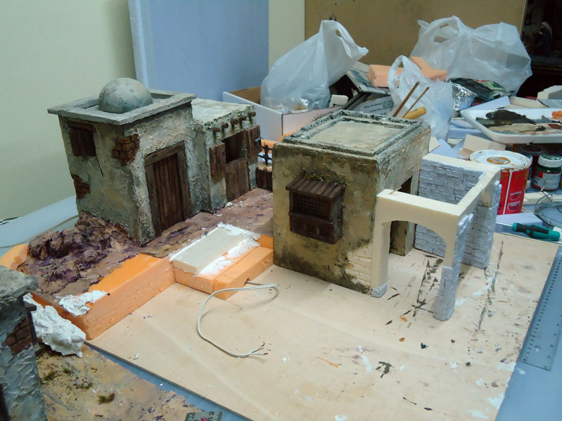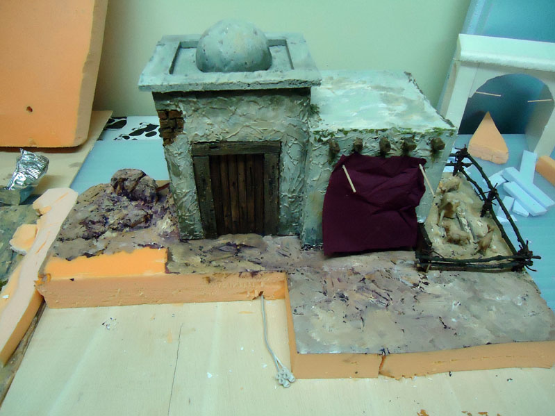 mira detras de Melchor, donde estan las dos mujeres en la puerta, no medio tiempo a trabajar la casa por dentro y con la puerta abierta puse una mujer dentro y otra fuera y coloque la cortina detras de la de dentro y no quedo mal.