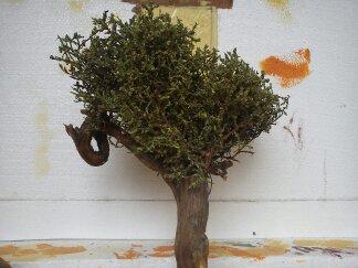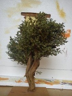 Gracias Barbarita por tu comentario. me alegra que tambien puedas hacer unos olivos con esta técnica fantástica que nos ha compartido Lola. Te cuento que al principio cometí un herror de cortar el cipres y trabajarlo recien despues de 24 horas; tambien con la cola que fue de mala calidad. Esto produjo que se secó a los cuatro dias de hecho el primer olivo y quedó demasiado fragil. para mejorar esto corté las ramas del cipres y en el mismo día las empapé de cola de mejor calidad; es muy importante que una ves puesta la cola y el orégano no dejar secar las ramas en una superficie plana porque al momento de que se seque queda una parte de la rama totalmente plana, no se si me explico, para evitar esto las he colgado en una piola `para el secado y asi permanescan esponjosas para el momento de pegarlas al tronco
