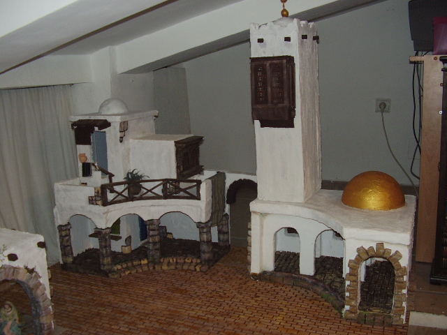 a ese edificio le faltan colocar unas columnas imitacion marmol, en ello estamos.manolo con el pueblo de lejania no me aclaro mucho creo que se queda demasiado cerca y no queda bien voy a probar con seguir con casas y calles a ver como queda en cuanto a las fotos intentare subirlas esta noche cuando termine de trabajar,estas invitado a una fritura cuando quieras abrazos y recuerdos a tu mujer