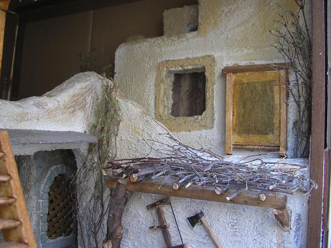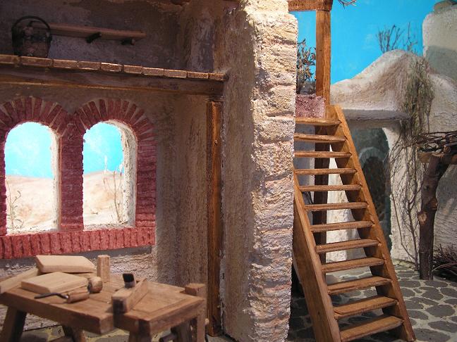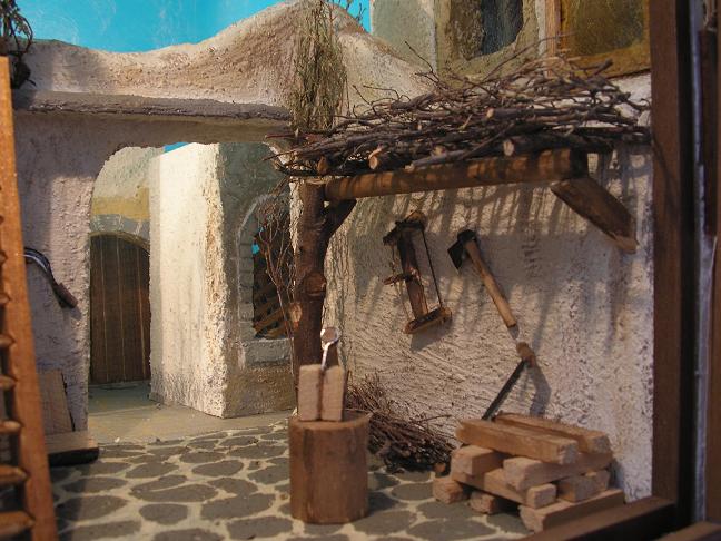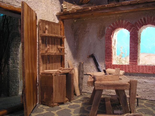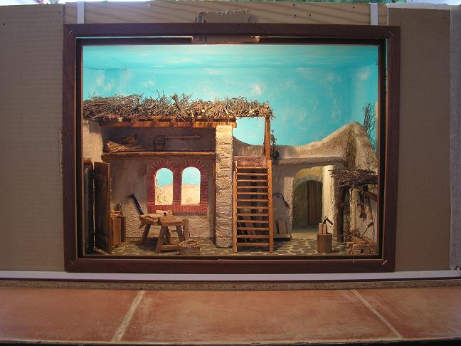 Hola belenistas.Gracias a todo lo aprendido de vosotros en este foro desde que entré en él por primera vez, he ido realizando algunas cosas.Me atrevo a poneros unas fotos de un diorama, que pretende ser el taller de San José.Lo vi en una exposición en Madrid y he tratado de imitarlo.Como vereis, me faltan las figuras ya que aún no las he comprado.