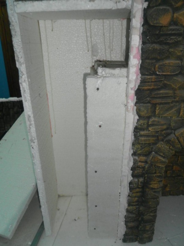 Una vez planteado todo ,y ya sabiendo lo que vas ha hacer ,lo primero es reparar los daños que tiene ,(ya que es reciclada,y ya que tiene muchos años de deterioro),y los empalmes se prepara para la union que se disimule las lineas a pegar. Y como las puedras son de 3 cm. de alto por 5 cm. de ancho y de 1 cm. y 1,5 cm. de gordo, se va cortando ,aprovechando que el porex extruido es de 3 cm. se corta tiras a 1 cm. y a 1,5 cm. , para luego cortarlos a 5 cm. y lijarla y darle formas diversas para que no sea de la misma forma, en los empalmes se va buscando el tamaño adecuado para no poner muchos trocitos ,( si hiciera falta poner una grande o dos mas pequeñas ,solo deves de jugar con la posicion de las uniones que no se vean dos una encima de la otra ).