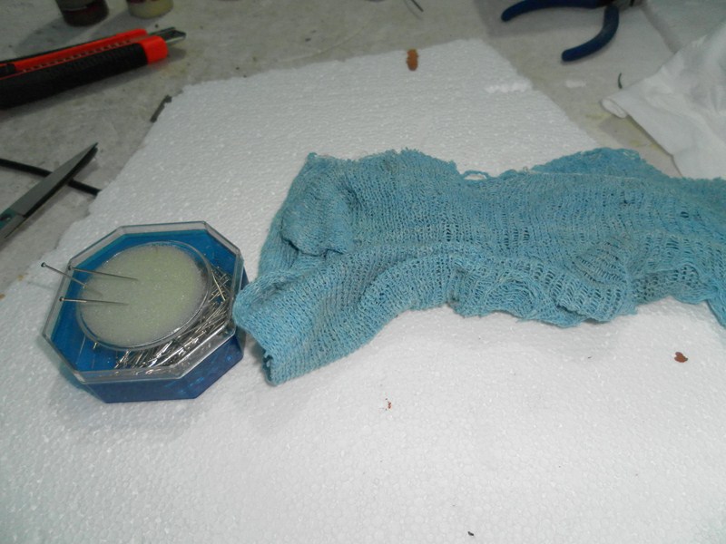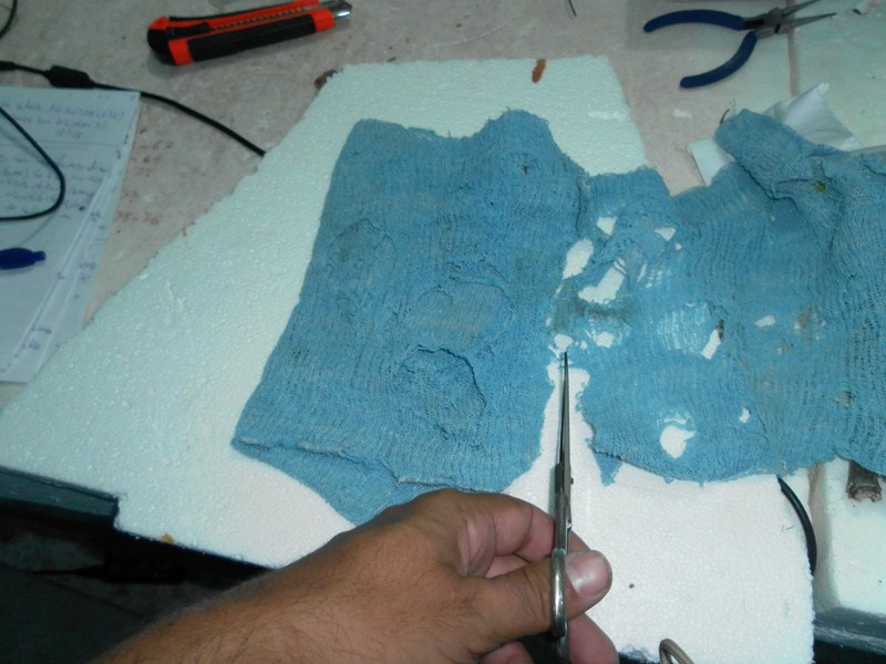 Se coloca el trapo en el interior de la ventana (10),cogido con mas alfileres.