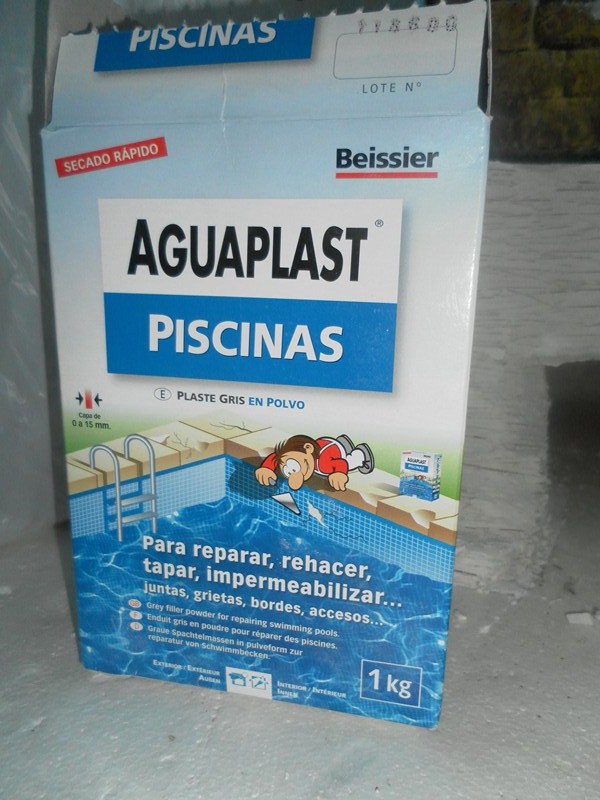 Se coloca uno de los hules en una endidura que se ha habierto para formar el cauce, y se coloca las maderas encima (9).Se prepara aguaplast piscinas (10), (que por sus caractericticas es uno de los mejores productos del mercado, ya que es resistente al agua salada, gran resistencia en superficie sin puente de agarre, impermeable, apenas se retrae, y se puede trabajar con humedad), y sobre el hule suerto, se de forma con la madera y la masa (11), el tuvo del agua se esconde bajo el hule (12), y se fija el primer hule con puntillas (13), pero lejos del cauce.