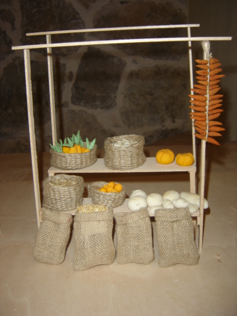 Te ha quedado muy bien el puestecillo. Yo le pondría por encima alguna rama de palmera o una manta de rayas.