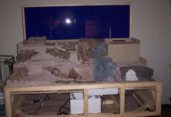 Ante todo agradeceros de mano la ayuda. Mi duda es la siguiente. Para mi belén he montado un “cielo” consistente en un bastidor, (foto0), que internamente esta divido en dos (foto1 y 2), es decir, tiene un plástico translucido azul en primer termino, una plancha de contrachapado pintado de negro con “agujeritos” en el medio, y otra también de contrachapado forrado de papel aluminio al fondo. De esta manera, al meter iluminación en la primera zona se hace de día, aclarándose muchísimo el azul oscuro, y al apagar esta y encender la del fondo se proyectan las estrellas y la luna a través de los “agujeritos” del contrachapado negro. Como idea hace tres años (que fue cuando lo empecé…) me pareció buena, pensando en meterle en cada “hueco” dos alógenos de 50 watios (burra grande, ande o no ande). Pensé en el calor que generaría, y añadí al diseño un par de ventiladores de los de los PC, uno en cada “hueco” para disiparlo… pero, aún sin probarlo, estoy convencido que el plástico, aún siendo rígido de 4 mm se va a fundir, o peor, quemarse el contrachapado. Hay que decir que cada “hueco” dispone de 8 cm. de ancho, lo que supongo, será insuficiente para aguantar el calor de ambos alógenos. He buscado en el foro, lo de los fluorescentes parece que no con los controladores dia/noche, y lo de los leds me da la sensación que va a ser insuficiente para iluminarlo. Fibra óptica para las estrellas solucionaría la mitad del problema. Por cierto, el cajón mide 120 cm. por 80 cm. más o menos. ¿Alguna idea sin tener que rehacer lo que ya he construido?