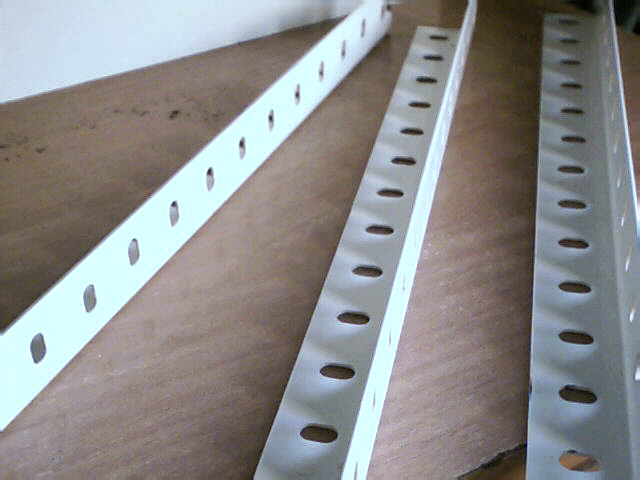 Espero ayudarte, pordesgracia de tener que trabajar ( es broma) me dedico al montaje de estanterias de angulo ranurado,como el que veo en la foto. si quieres alguna ayuda no dudes en preguntar, si lo has montado con dice geko en el dibujo esta bien, pero le falta un amare en la parte inferior a unos 25 cm. del suelo con sus correspondientes escuadras. si tienes dudas preguntame. tambien por lo que veo en las fotos, el angulo blanco que estas utilizando es un poquito endeble en el mercado hay mucho modelos y fabricantes y algunos lo hacen mas delgado por el tema de los precio , pero creo que puede servite.
