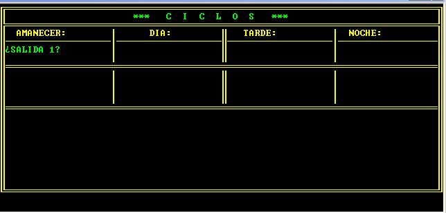 LOCATE 6, 50: PRINT "CICLOS N§": LOCATE 6, 66: PRINT ZZ