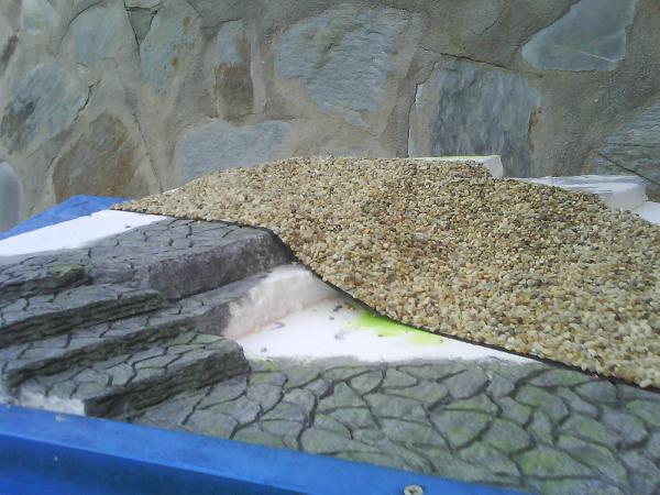 Viendo las fotos se me hace un poco difícil saber lo que quieres hacer exactamente. Me parece que en la tercera foto y última foto, no se aprecia el desnivel adecuado hacia la desembocadura. Asegurate de que tenga el desnivel adecuado.También debes asegurarte de impermeabilizar todo el cauce y si consigues que el agua circule por donde tu quieres sin que se desborde, yo creo que no deberías tener ningún problema.
