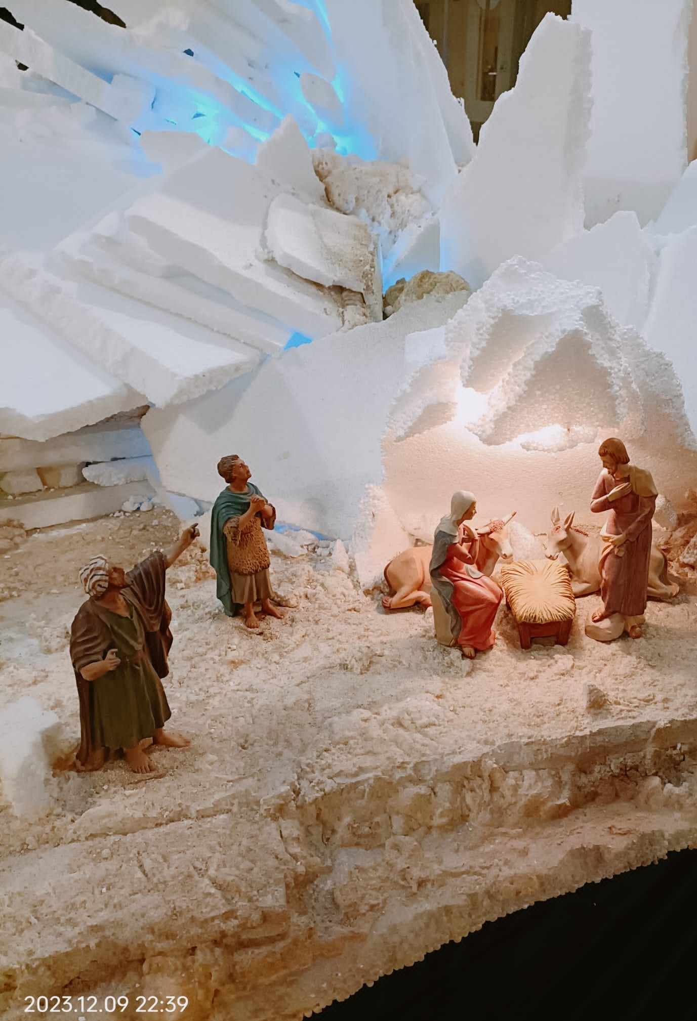 Admiro el contraste de la humanidad y la divinidad… admiro el juego que aprecio entre la frialdad de la escena, de las texturas rugosas y afiladas con la amabilidad, ternura y sencillez de las figuras que componen el misterio… ¿no es ese el mensaje de la Navidad?