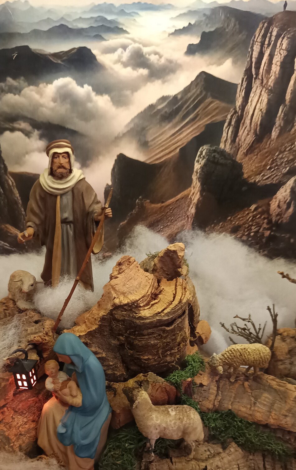 El germen de esta idea —como algunos ya sabéis por otros hilos— no podía ser otro que el belén casero de 2024, titulado Nómada. En él se establecía un diálogo con El caminante sobre el mar de nubes de Friedrich, a modo de homenaje a la figura del pastor que protagonizó los belenes de la Parroquia el pasado año. Aquel Belén Nómada viajó de Las Palmas a Madrid, recorrió la capital y terminó reposando junto a su “homónimo” en la iglesia, cerrando así un ciclo físico y simbólico.