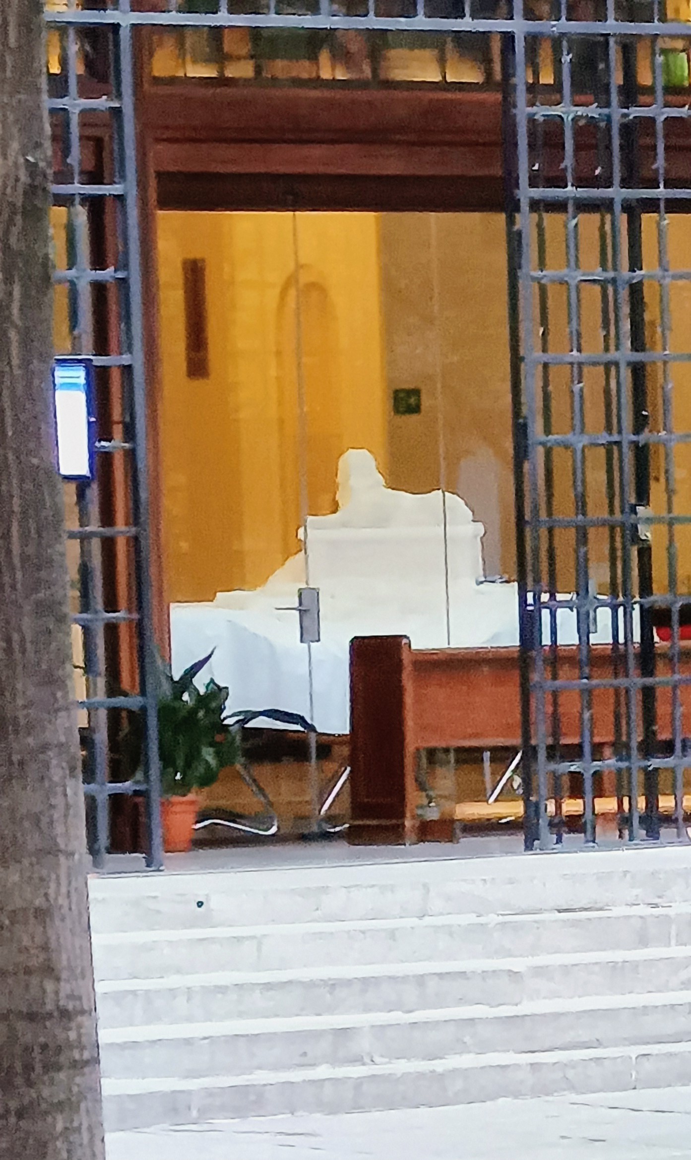 ¡Gracias por tu comentario, y para nada es una intromisión! Para aclarar, no son cristales, sino metacrilatos, y tampoco son cajas, sino hornacinas ubicadas en las naves laterales de la iglesia. Tal como indicas, intentamos inclinarlas hacia un punto para reducir el peligro de que alguien pudiera hacerse daño al sobresalir, aunque es cierto que no se evitaban del todo los reflejos.
