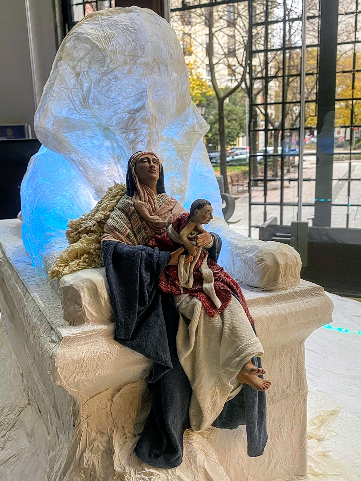 Y, al mismo tiempo, esta hornacina guarda un recuerdo especial: aquella visita al Museo Arqueológico cuando Hernán vino a Madrid, en los días de la feria de Alcobendas. Porque también los recuerdos, como las figuras, viajan… y encuentran su lugar en el Belén.