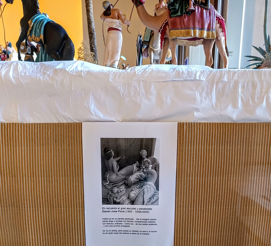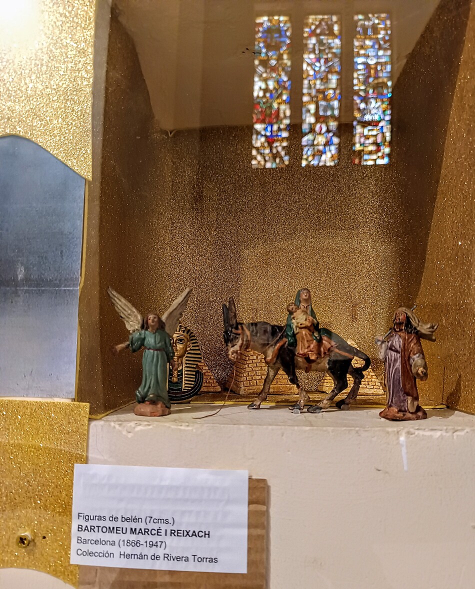 Vamos con otra sorpresa. Entre los pequeños belenes hay uno nuevo, creado especialmente para este año: una pequeña instalación, en sintonía con el Belén principal, realizada en papel y ubicada en un discreto hueco de la pared, cerca de un confesionario.